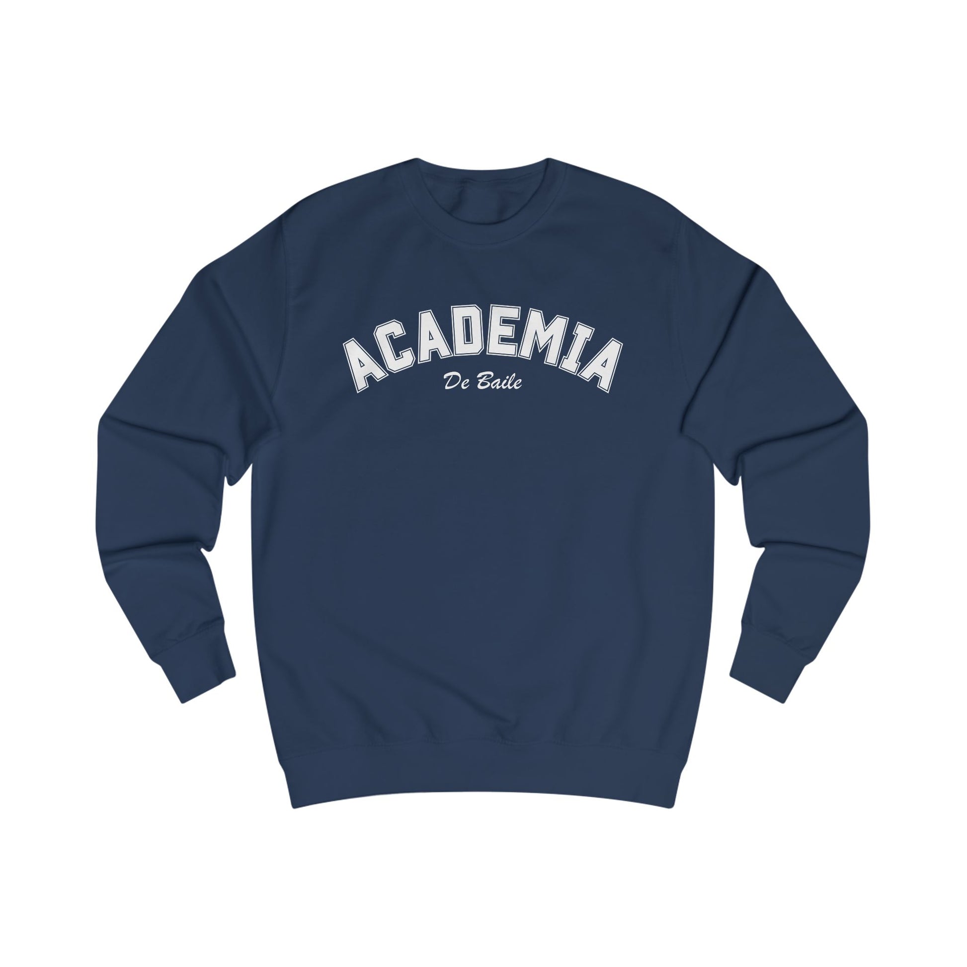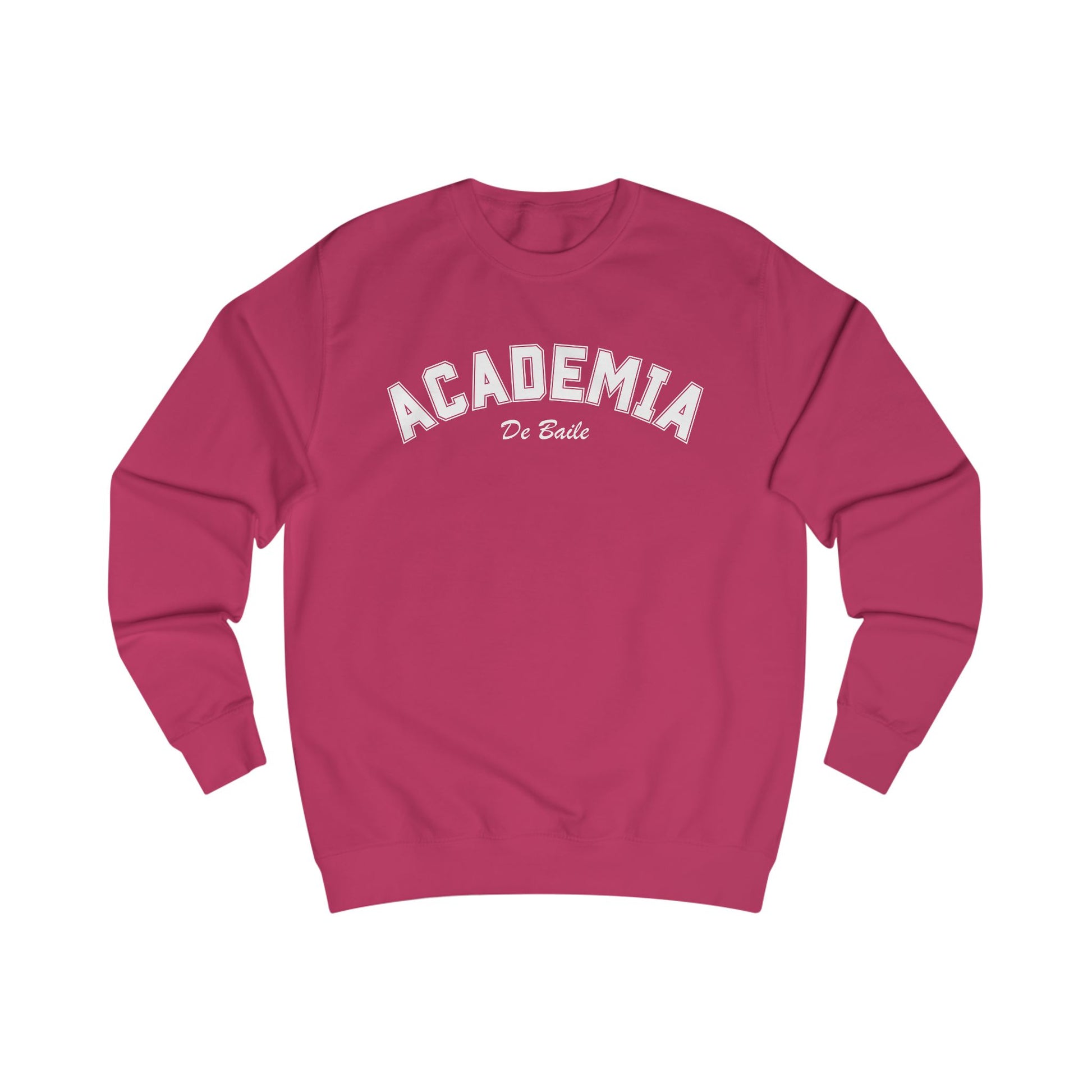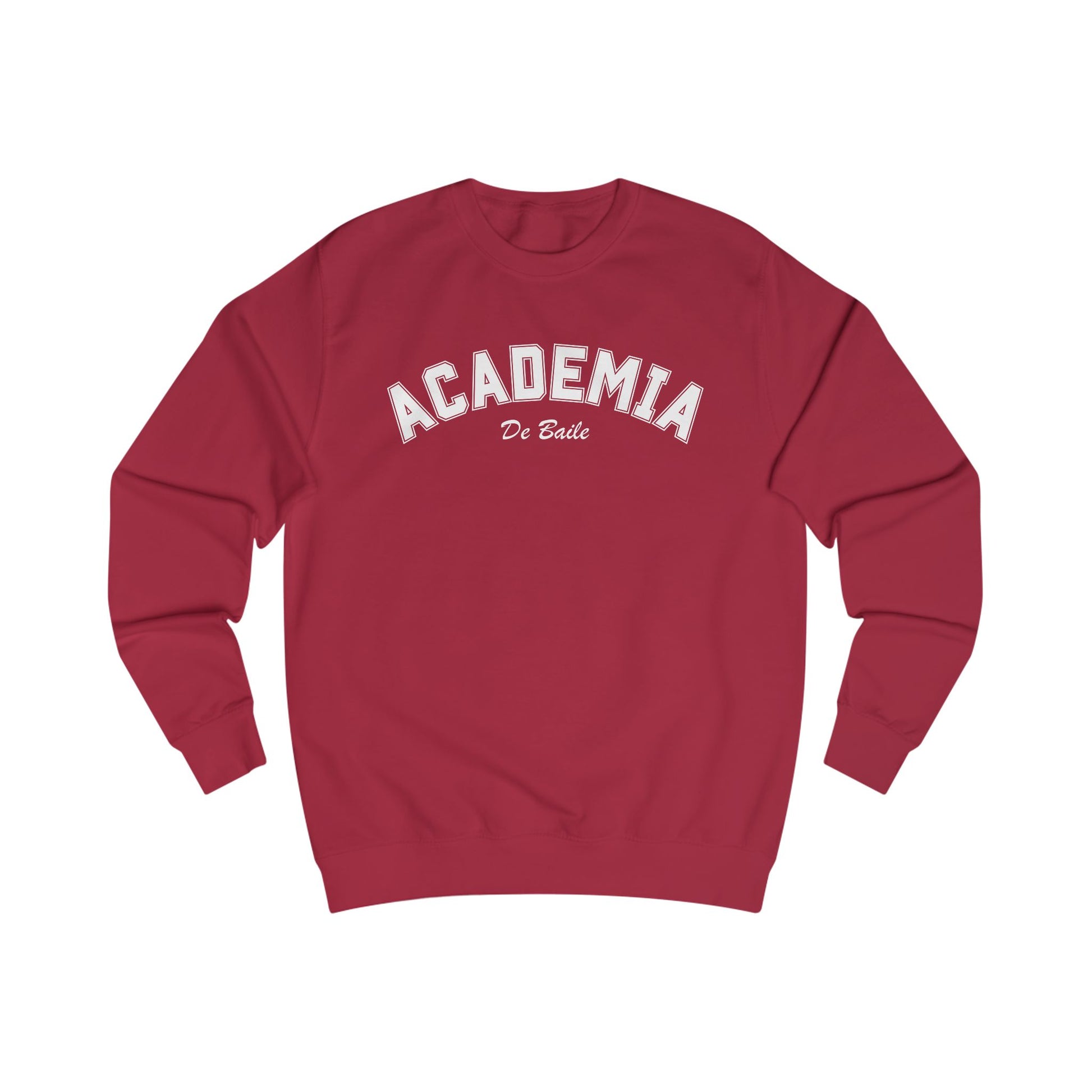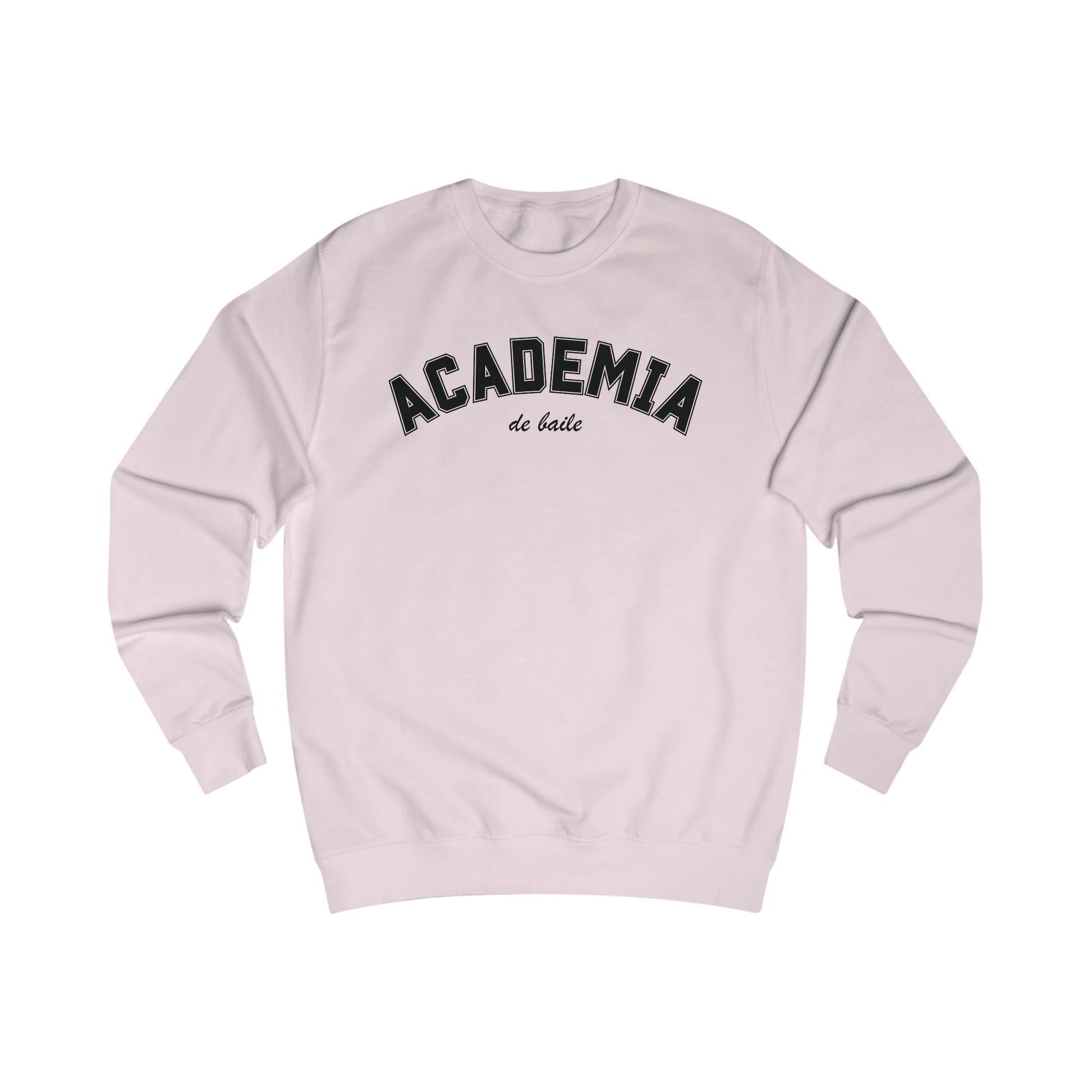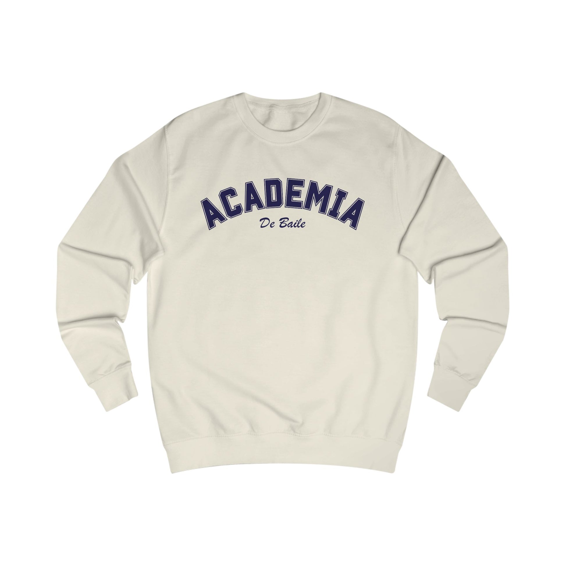 Step into dancer style with the Academia de Baile Sweatshirt. This cozy, mid-weight cotton-blend piece blends warmth and breathability, perfect for layering before class, rehearsals, or lounging off the floor. The “Academia de Baile” graphic features a clean, vintage-inspired font for a timeless, preppy look. Ribbed cuffs, a structured neckline, and reinforced stitching keep it comfortable and durable through every move. Add the matching t-shirt for the perfect pairing! Academia T-shirt – Omi Dance Gear