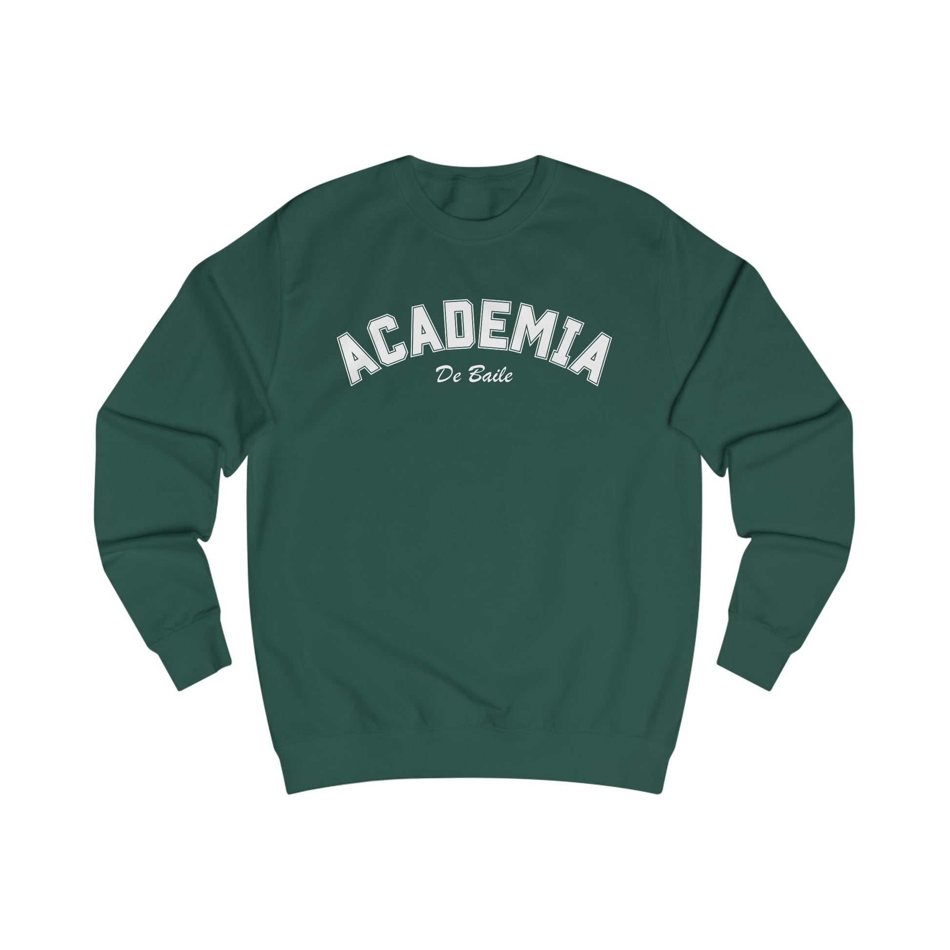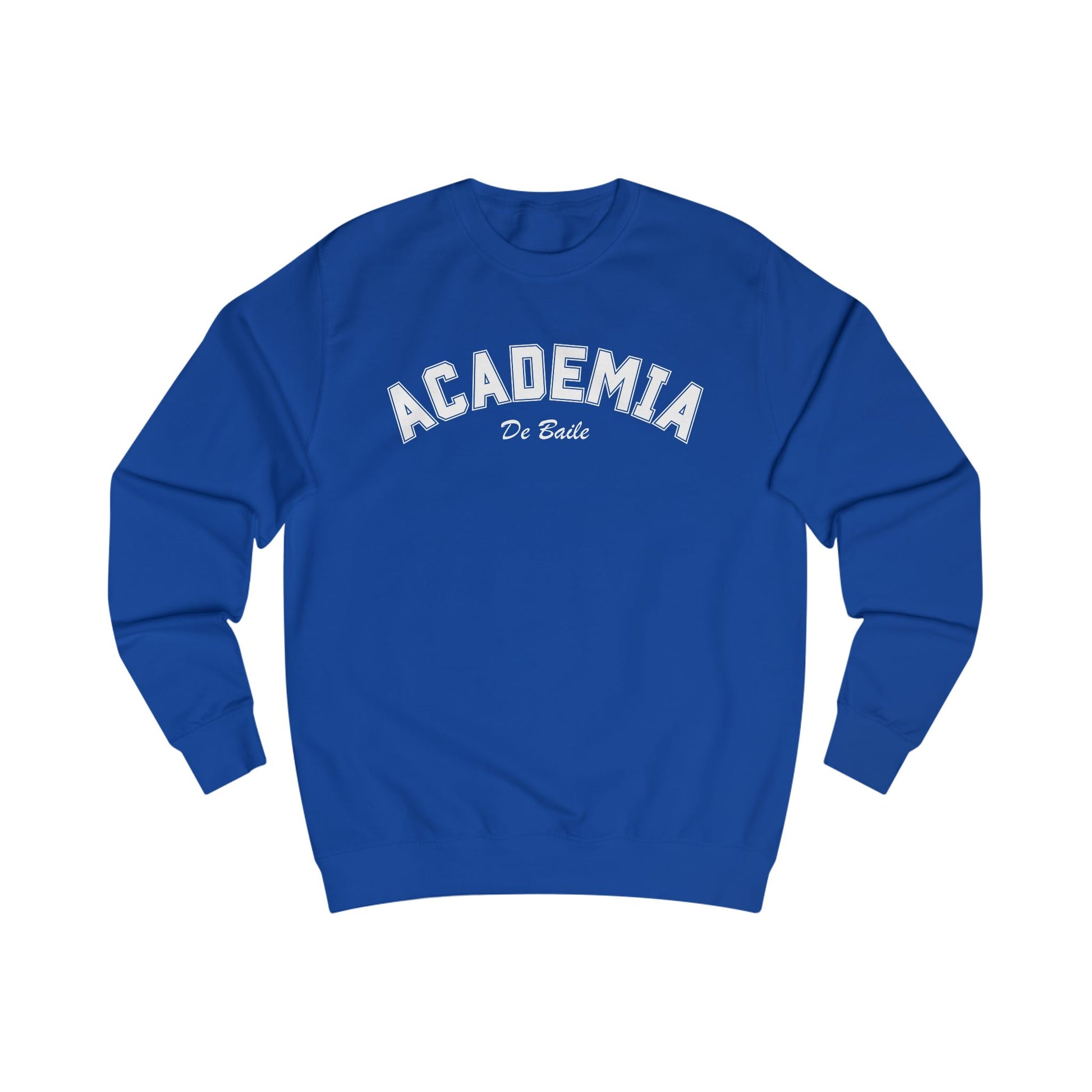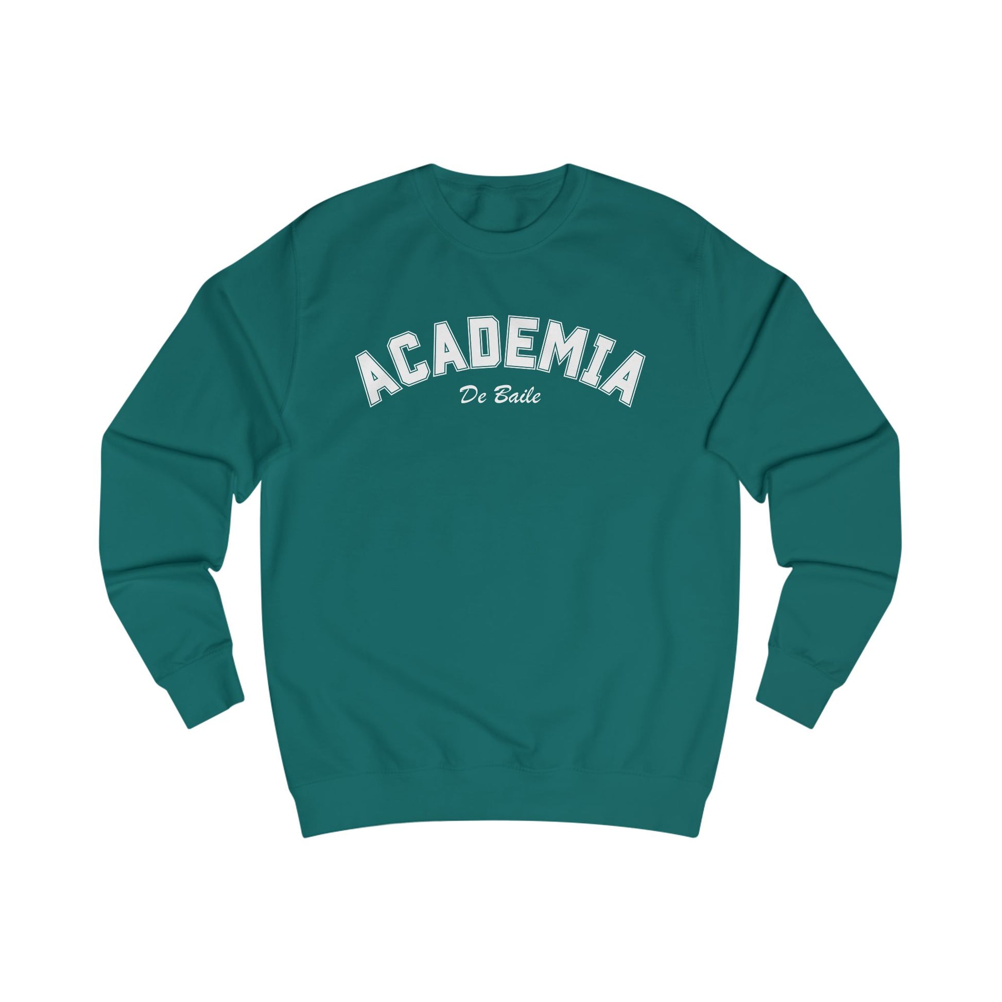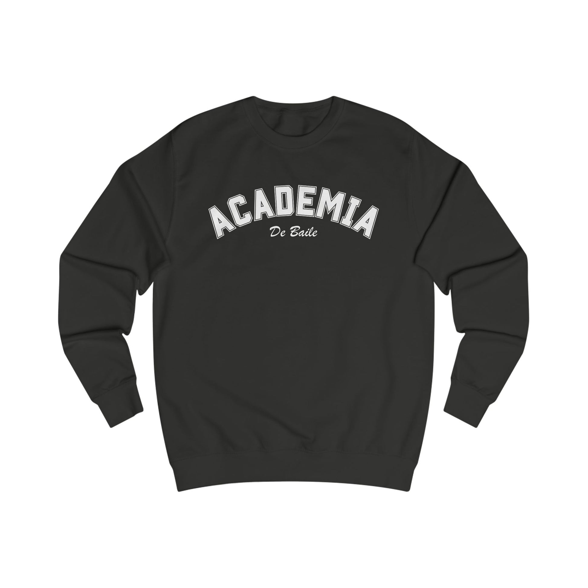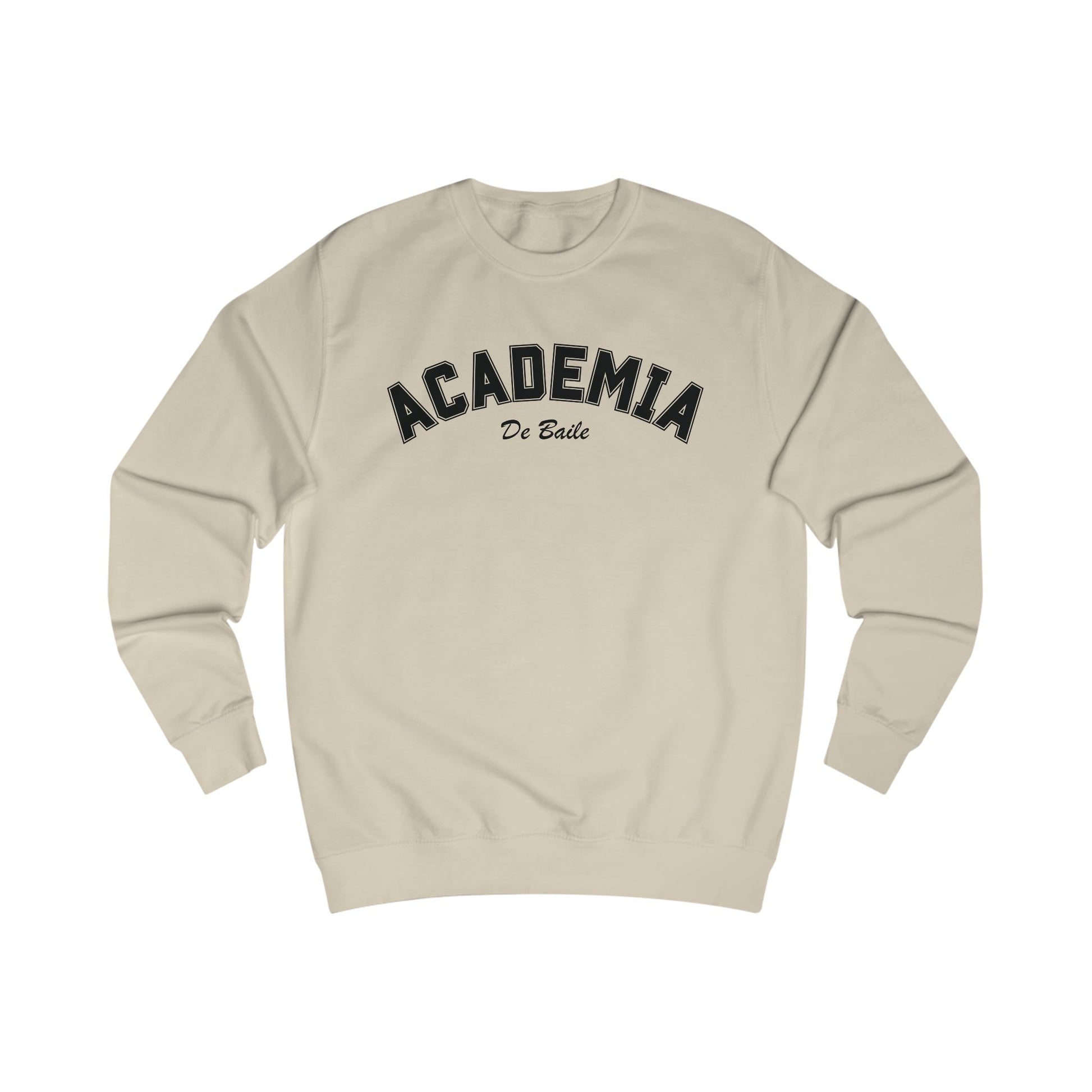 Step into dancer style with the Academia de Baile Sweatshirt. This cozy, mid-weight cotton-blend piece blends warmth and breathability, perfect for layering before class, rehearsals, or lounging off the floor. The “Academia de Baile” graphic features a clean, vintage-inspired font for a timeless, preppy look. Ribbed cuffs, a structured neckline, and reinforced stitching keep it comfortable and durable through every move. Add the matching t-shirt for the perfect pairing! Academia T-shirt – Omi Dance Gear