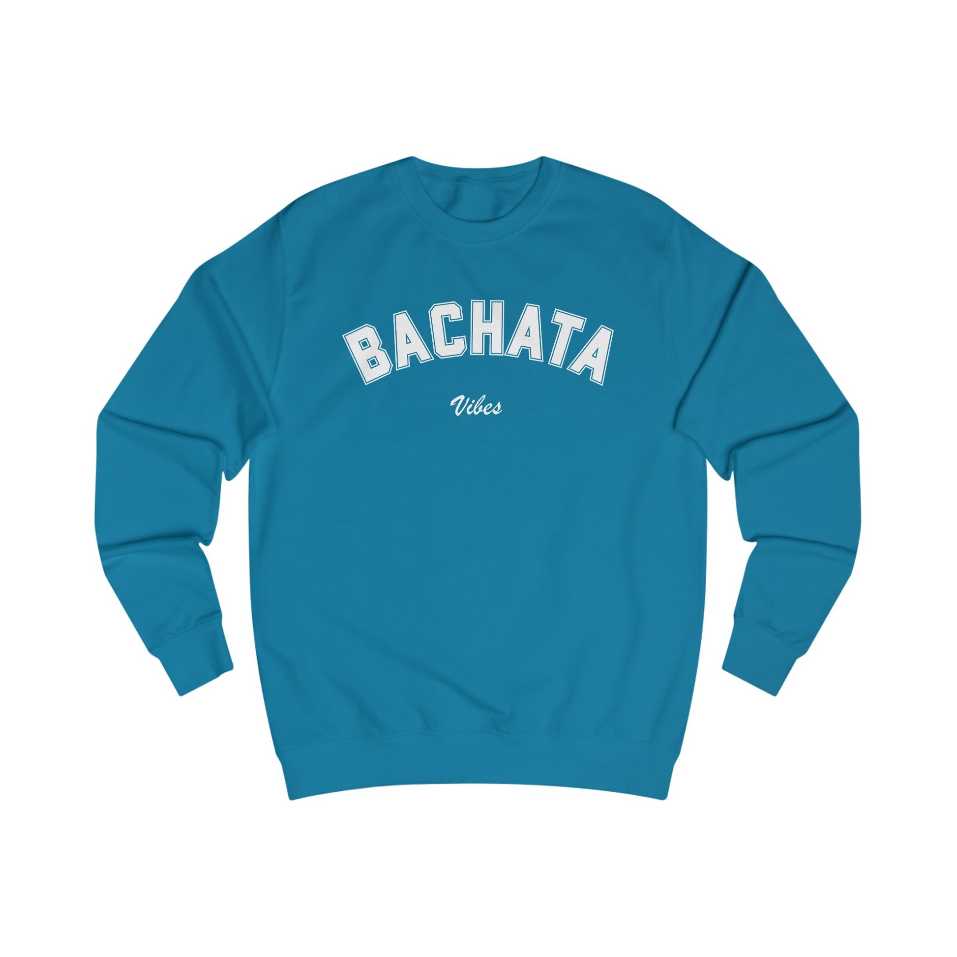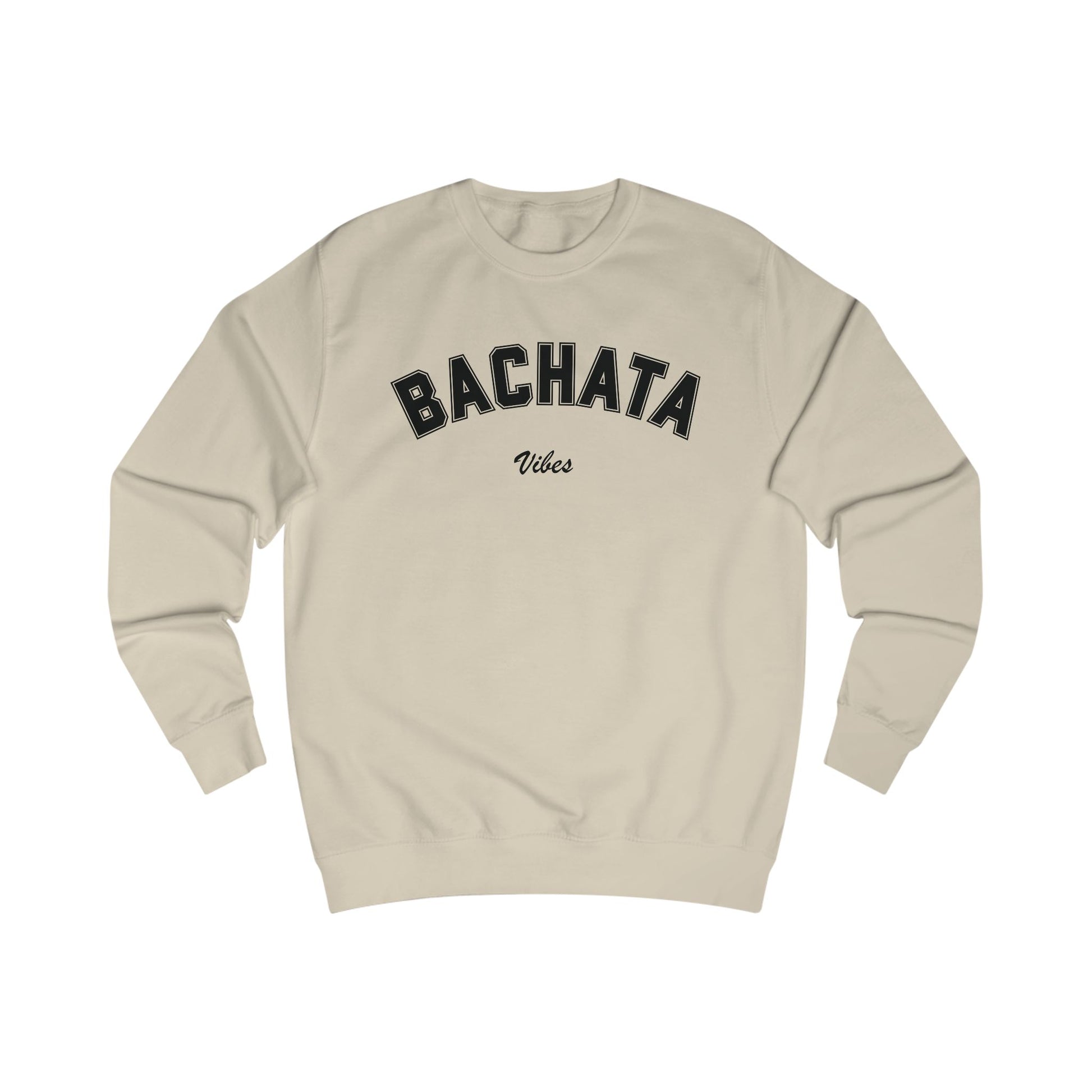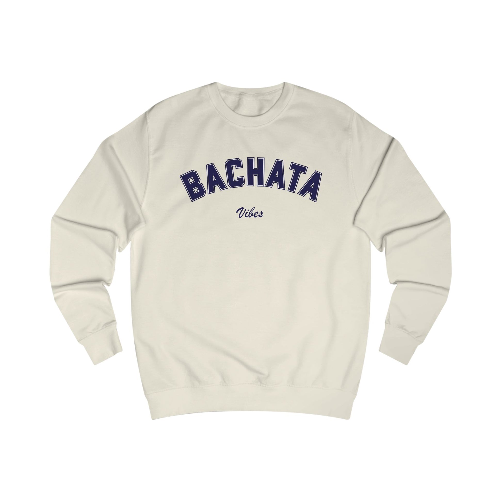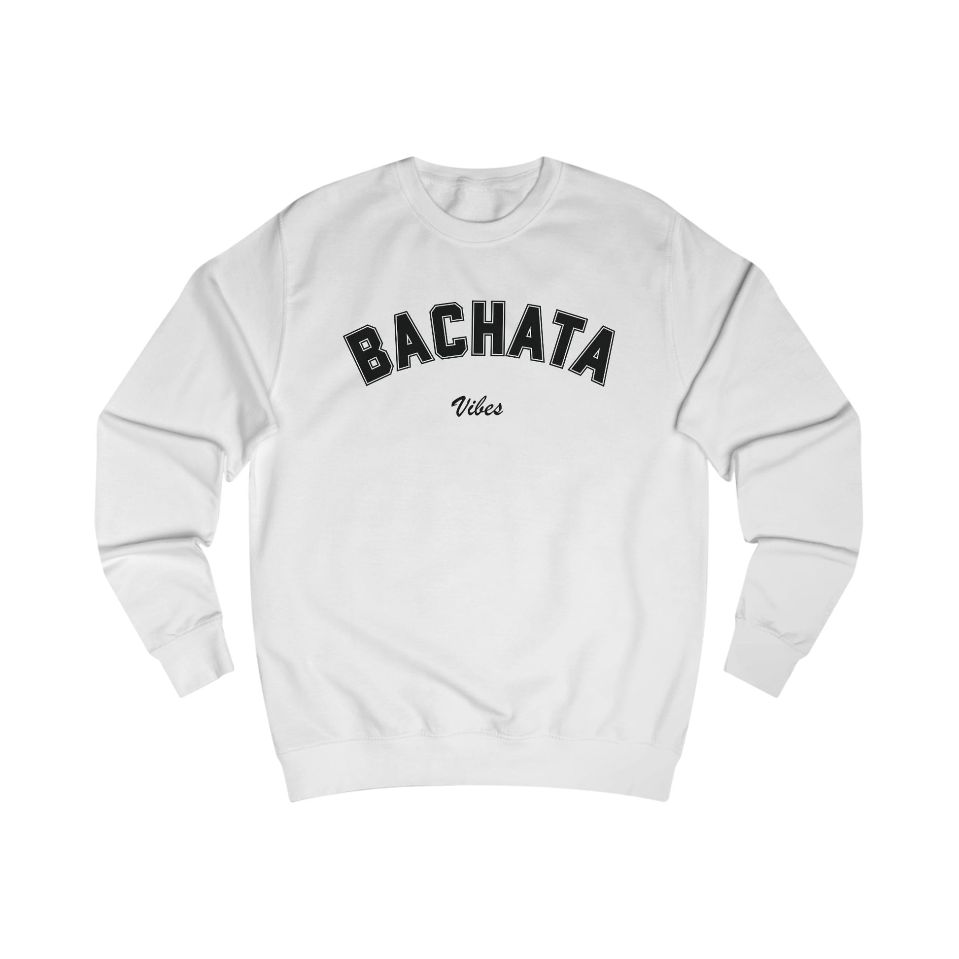 The bold “Bachata Vibes” graphic celebrates flow, connection, and energy, while ribbed cuffs, a classic crew neckline, and relaxed unisex fit ensure comfort and confidence. Pair it with the matching tee for the ultimate bachata look: Bachata Collegiate T-shirt – Classic Style for Dancers – Omi Dance Gear!